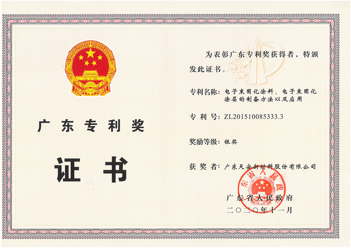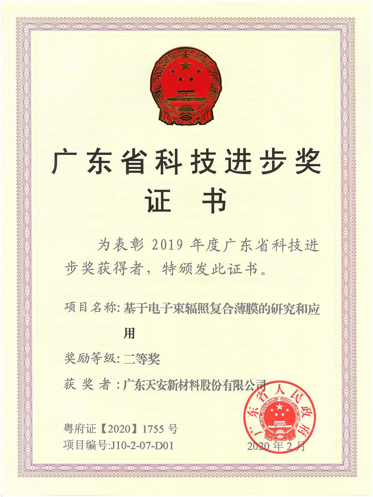 • 2019年度廣東省科技進(jìn)步獎二等獎--天安新材