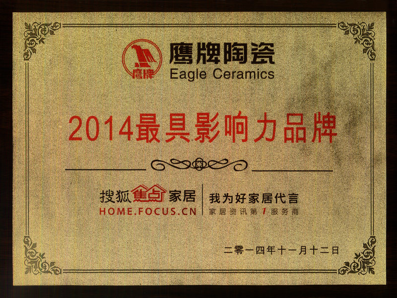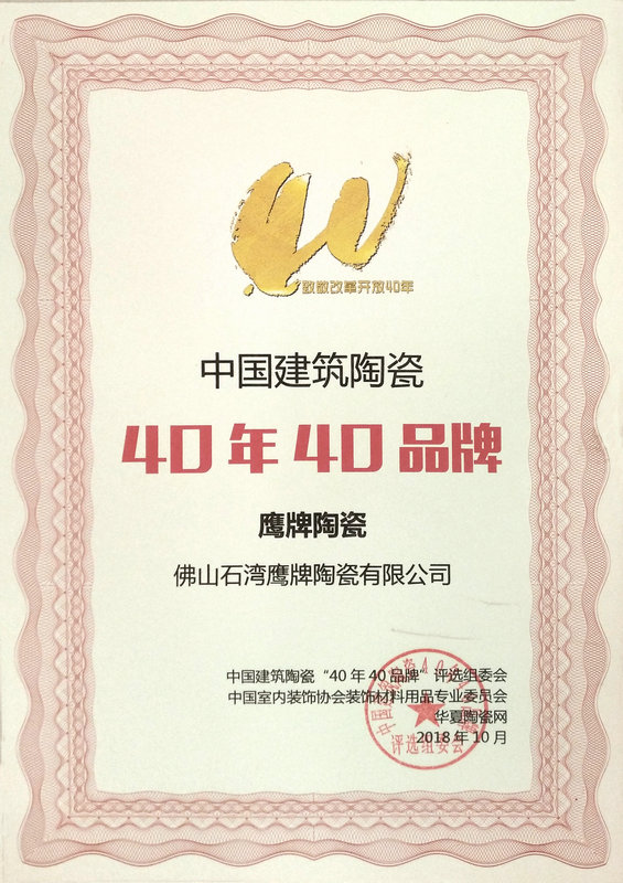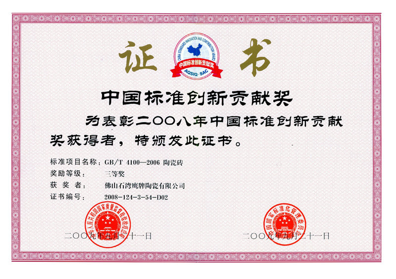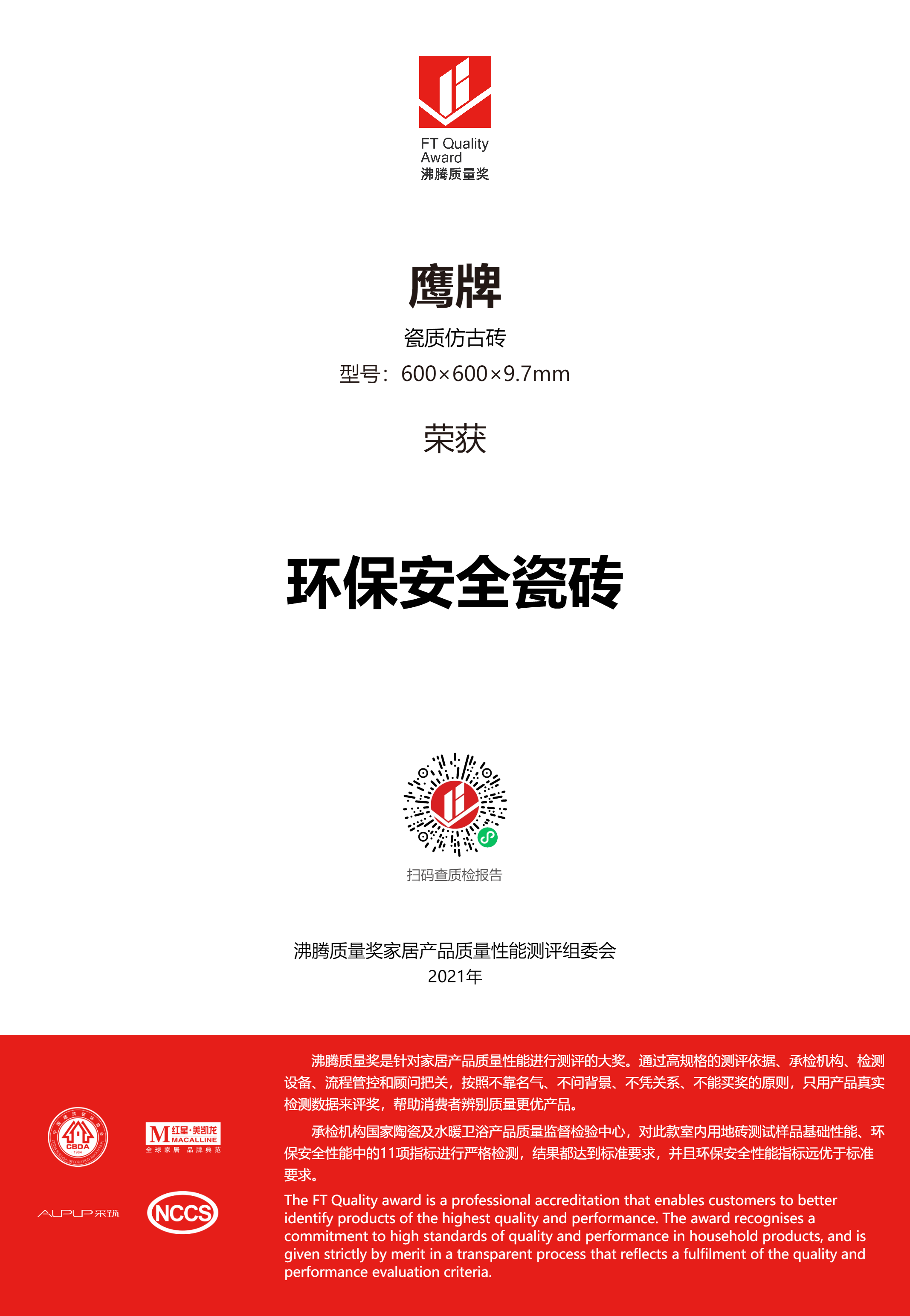 鷹牌瓷質(zhì)仿古磚-600x600x9.7mm獲獎證書