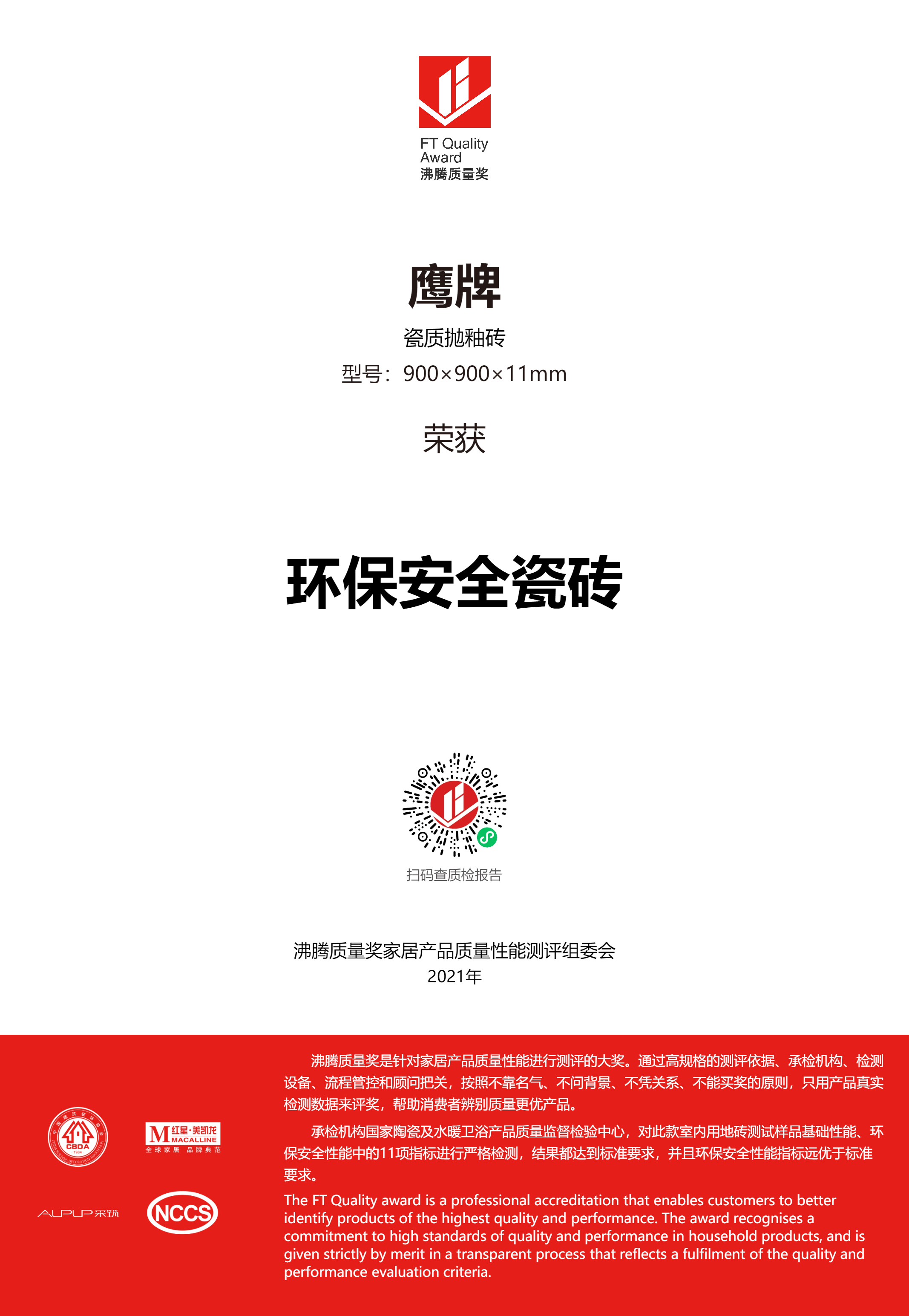 • 鷹牌瓷質(zhì)拋釉磚-900x900x11mm獲獎證書