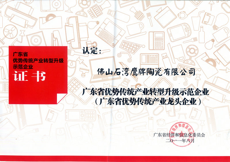 • 2012鷹牌陶瓷榮獲禪城區(qū)第一批低碳試點企業(yè)榮譽(yù)稱號
