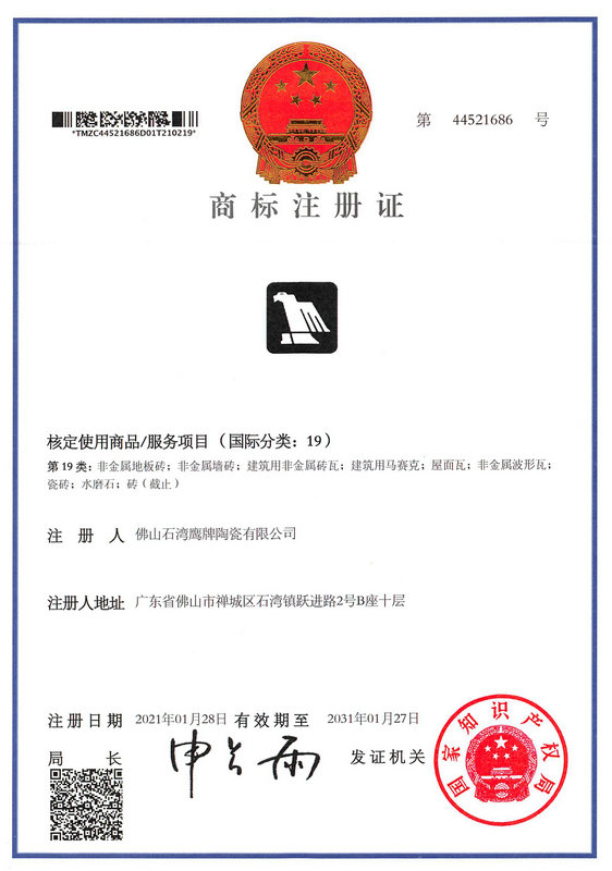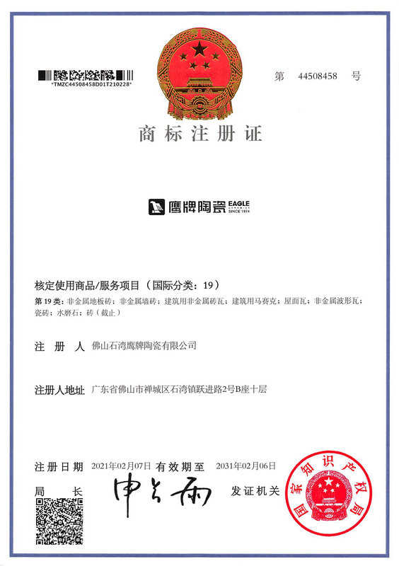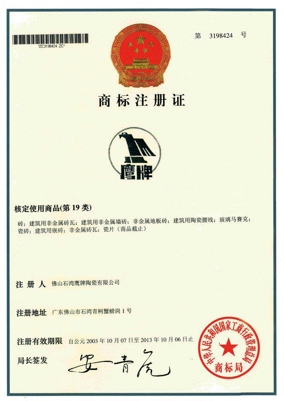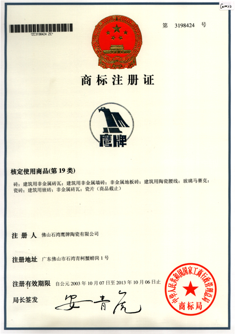 • 鷹牌陶瓷EAGLE CERAMICS SINCE 商標(biāo)證書